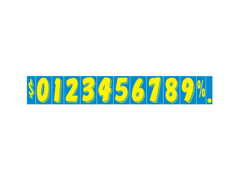 Big, bold Yellow/Blue 11½" windshield numbers made for quick pricing that pops from the road. Durable, waterproof vinyl with removable adhesive and slit‑back liner—apply fast, remove clean.