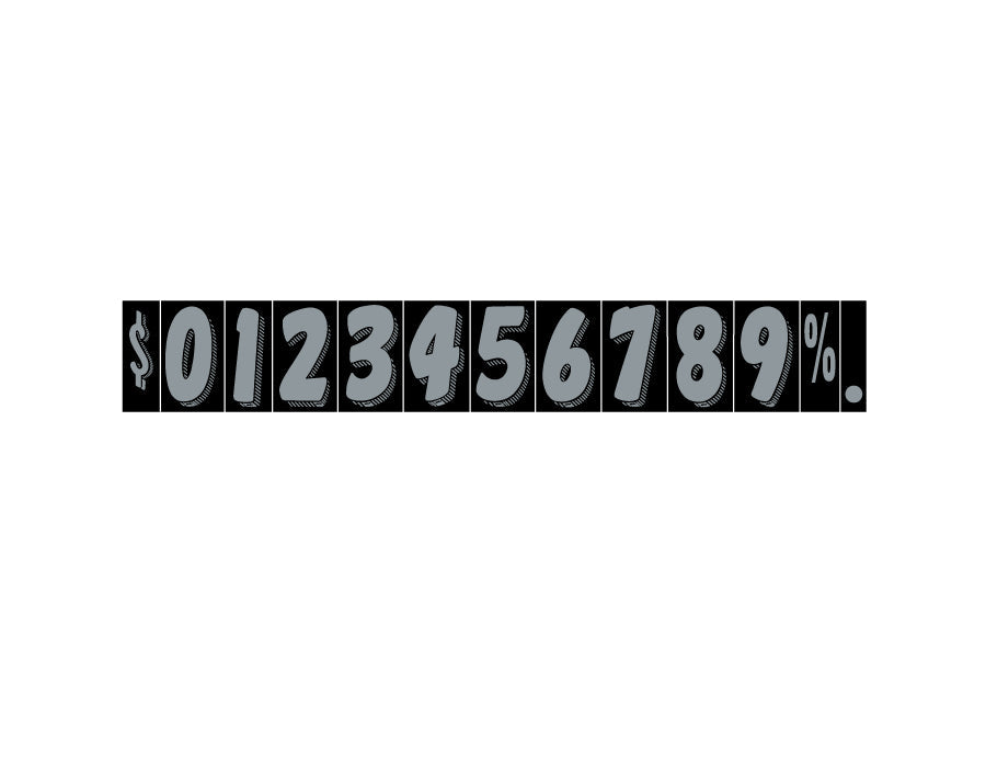 7½″ Silver & Black adhesive windshield numbers made for clean pricing on sedans, crossovers and small SUVs. Removable adhesive peels clean when you reprice; bold shading photographs well for online listings.Angie's Pro Tip: Use Silver & Black digits on vehicles parked farthest from the road so the price still carries in drive‑by traffic.