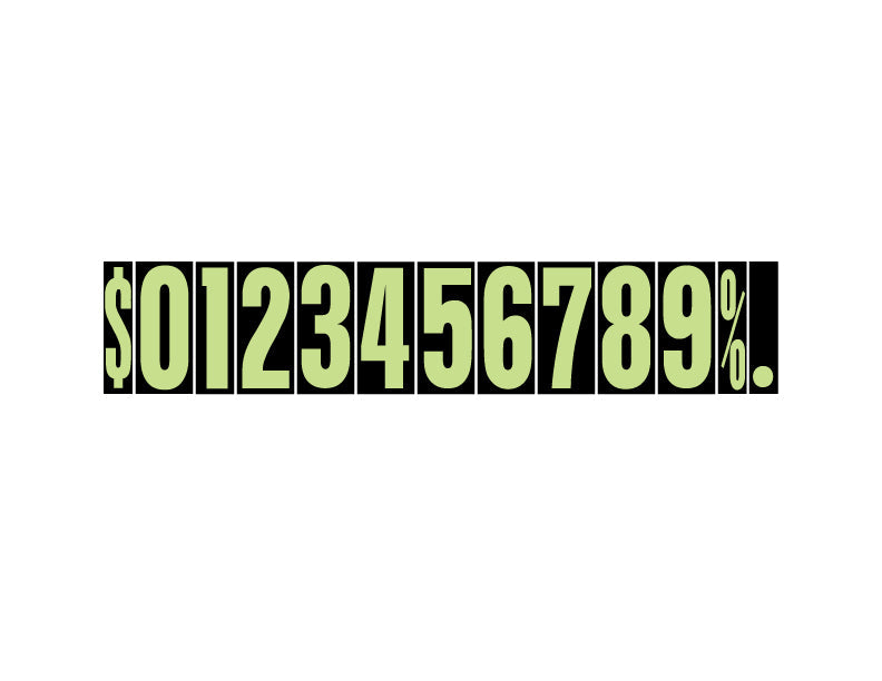 9½″ Neon Green/Black adhesive windshield numbers. Removable adhesive grips in rain and wash bays yet peels clean when you reprice. High‑contrast shading photographs well for online listings.Angie's Pro Tip: Mirror your price format across the row (e.g., $9,999) so the lot reads organized at a glance—consistency builds trust.