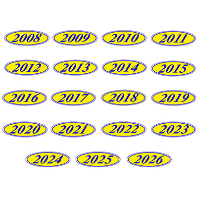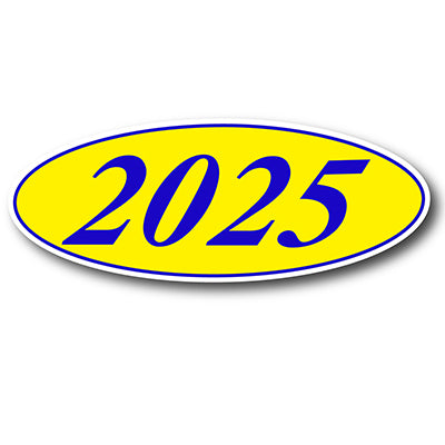 Designed to create a powerful and consistent brand theme, these classic blue and yellow oval year model signs bring a sharp, professional look to your entire lot. This high-contrast color combination is made for excellent readability and is perfect for a strong dealership branding strategy. As the anchor of your windshield display, these large dealership year stickers clearly communicate the model year while creating a clean, uniform look across your inventory.