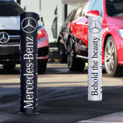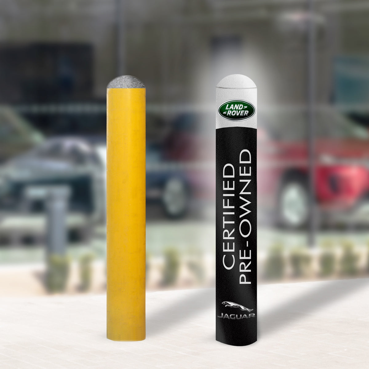 Made to transform your most overlooked assets into powerful marketing tools, these custom bollard covers are the professional solution. They slide on in seconds, covering up functional safety posts with a vibrant, full-color message from your brand. Made from a durable, weather-resistant stretch polyester, they're the perfect way to extend your branding, promote a sale, or direct traffic, turning necessary fixtures into an essential part of your dealership's curb appeal.