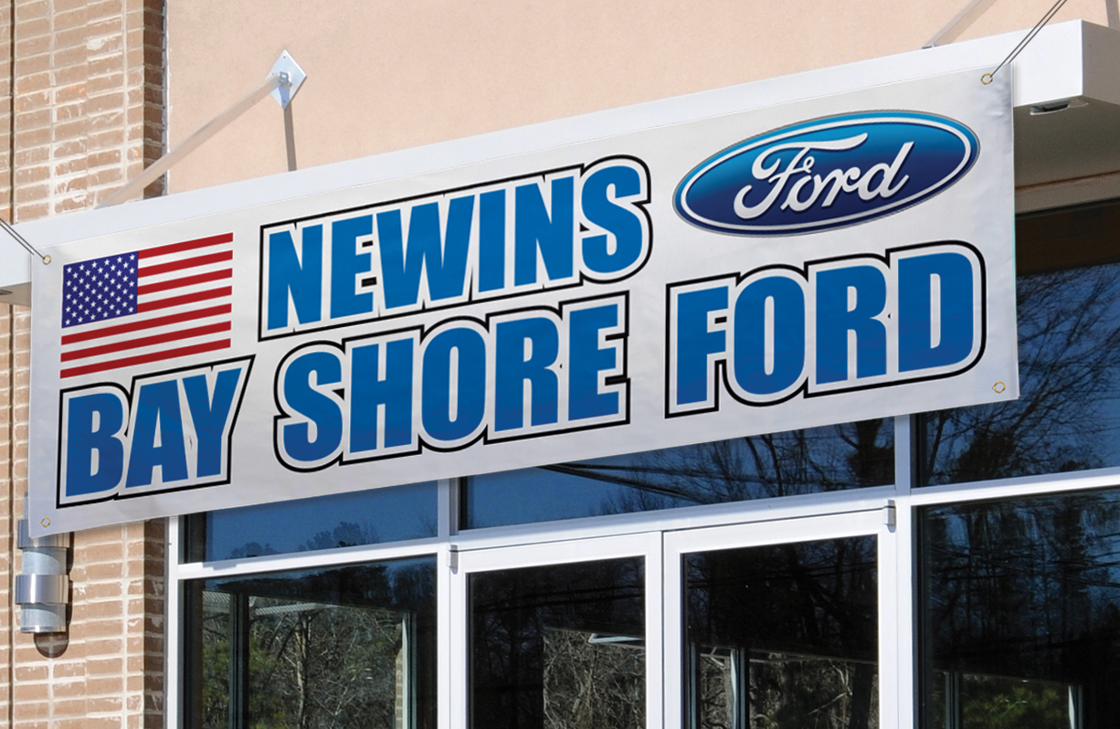 Heavy‑duty custom vinyl banner (3' x 10'). UV‑resistant print with reinforced hems and grommets—built for fences, facades, and tent sales.