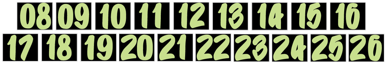 Stylized ‘Designer’ year‑model windshield digits with bold strokes and clean outlines. High contrast that photographs well and reads from the street.