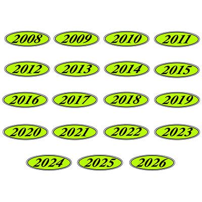 To command the attention of drive-by traffic, you need the brightest, most powerful visual you can put on a windshield. This is our #1 seller for a reason. These fluorescent year model signs use the most powerful color combination in the industry—electric chartreuse on deep black—to give your inventory an unmatched visual pop. As the anchor for your windshield display, these large dealership oval signs are the proven professional choice for dealers who need to guarantee their car lot merchandising is working at maximum power.