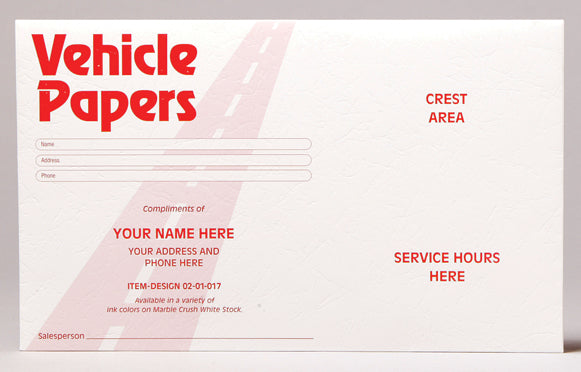 Service/maintenance folios with clear pockets for invoices, inspections, and parts receipts. Keeps recon proof tidy for appraisals, lenders, and buyers.