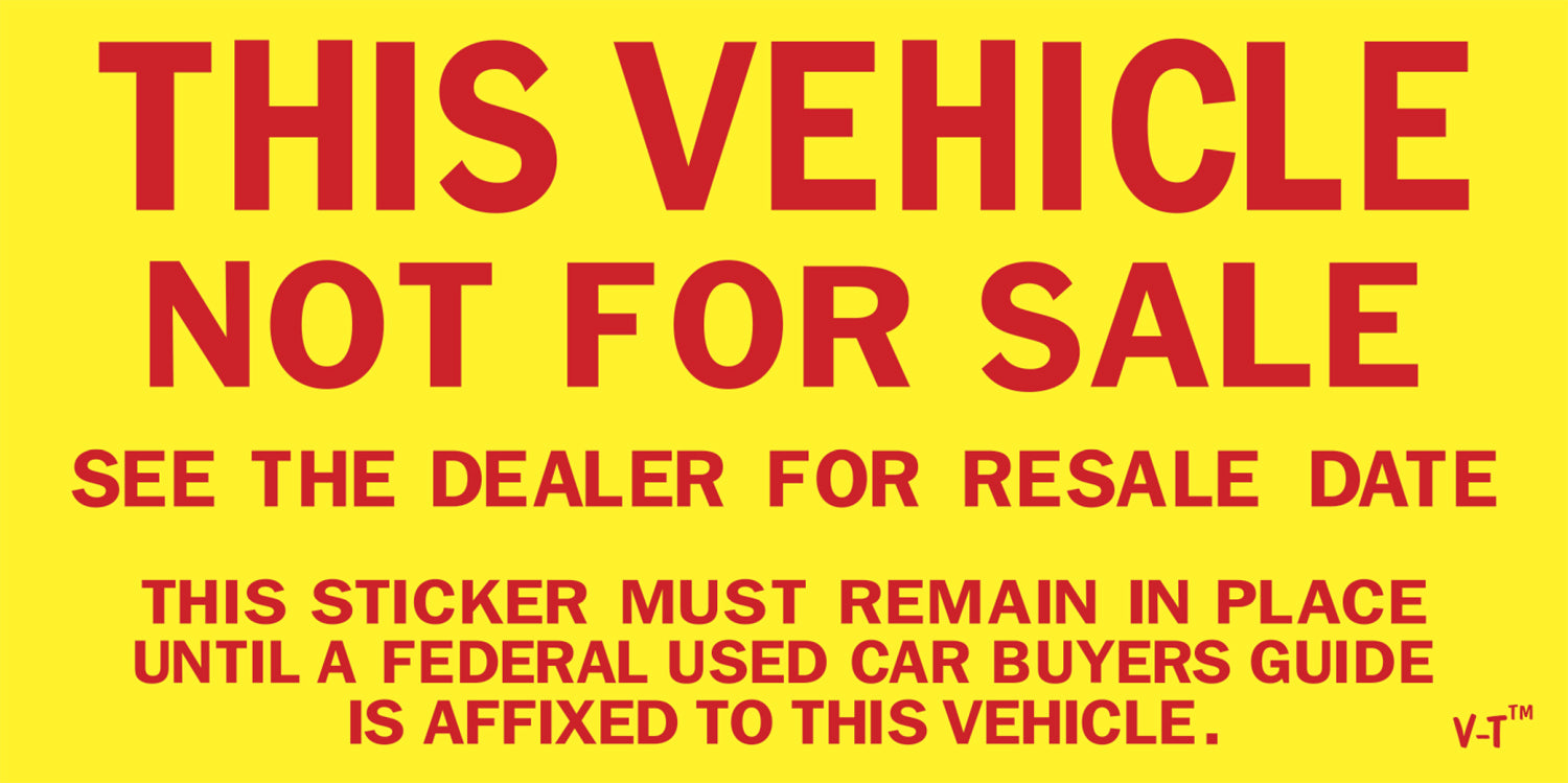 A bright, clear sticker required for vehicles that are not yet ready for retail sale.