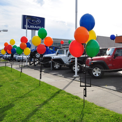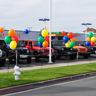 This is a complete, lot-ready kit built from a sturdy aluminum pole and a rugged steel ground spike. The five custom-printed, helium-free balloons create a massive beacon of color that saves you thousands in helium costs and gives your dealership a polished, high-impact look that lasts for months.