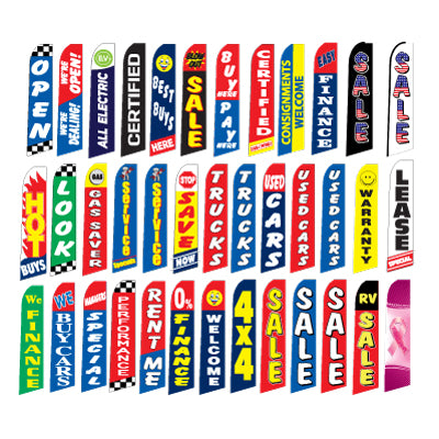 Swooper flag & pole kit with ground spike base. Tall, high‑visibility flag with segmented pole; base options fit turf or asphalt for daily lot use.