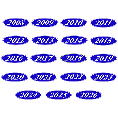Designed to project a clean, professional image, these blue and white oval year model signs are the perfect choice for a trust-focused brand. The crisp, high-contrast color scheme is authoritative and easy to read, making it ideal for your top-tier pre-owned inventory. As the centerpiece of your windshield display, these large dealership year stickers clearly communicate the model year while reinforcing your dealership's commitment to quality and transparency.
